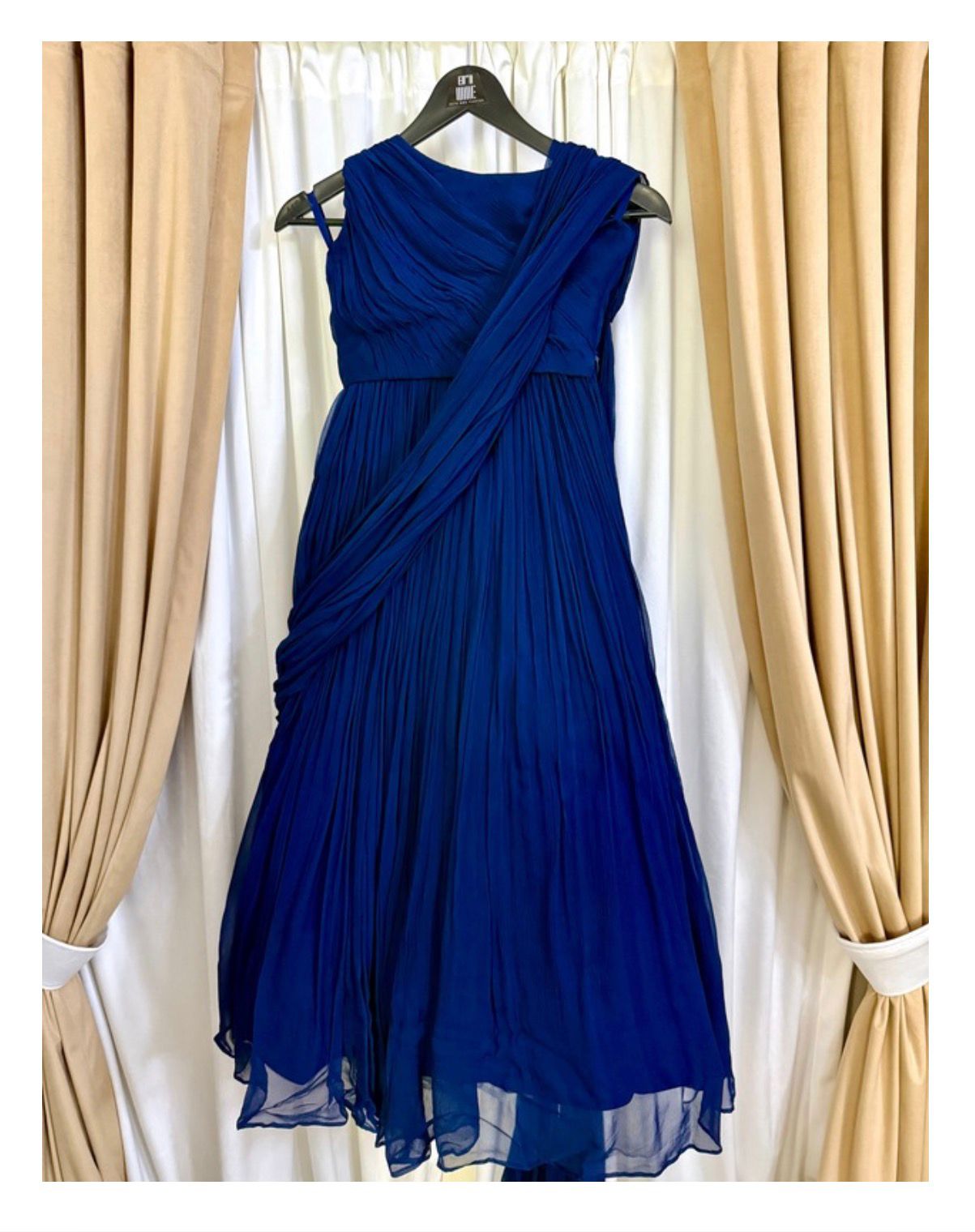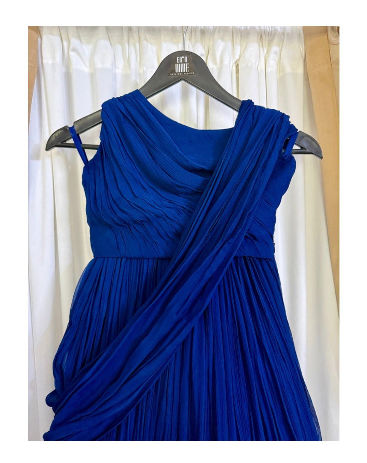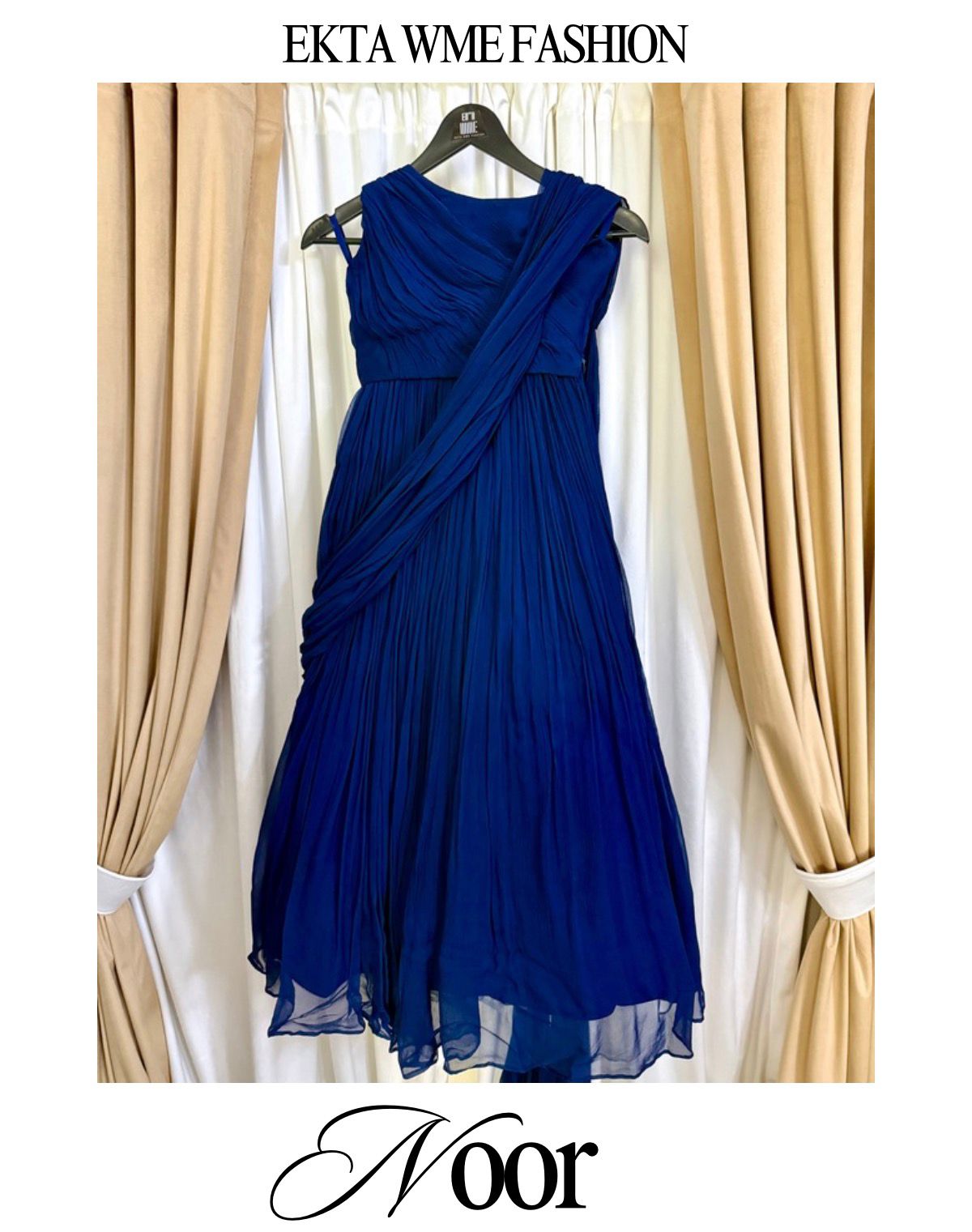 Noor is a striking modern fusion gown crafted in a deep, vibrant blue, designed to celebrate movement, texture, and timeless elegance. The silhouette blends classic draping techniques with a contemporary gown structure, creating a refined statement for formal occasions.