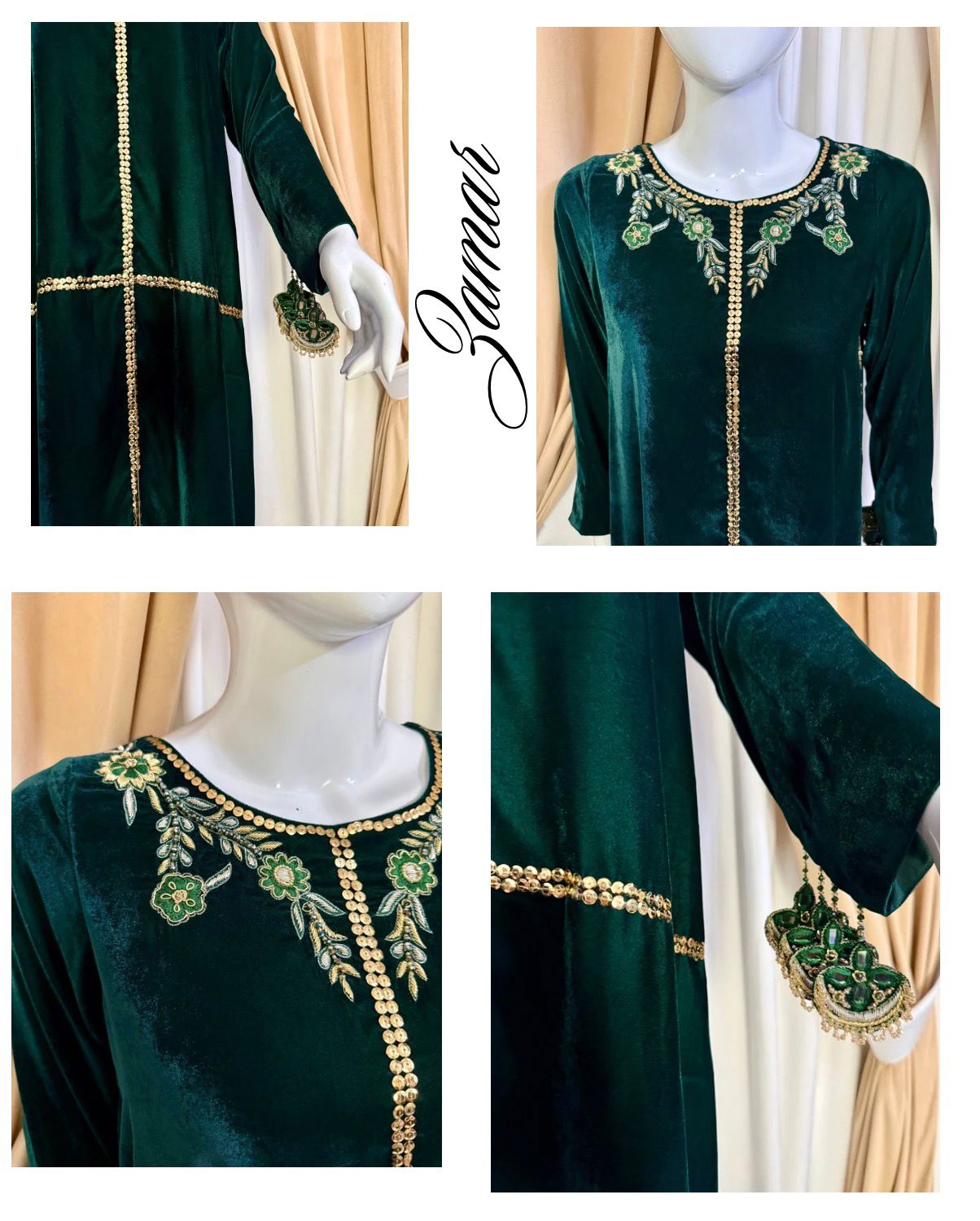 Title: ZAMAR | Hand-Embroidered Emerald Velvet Kurta