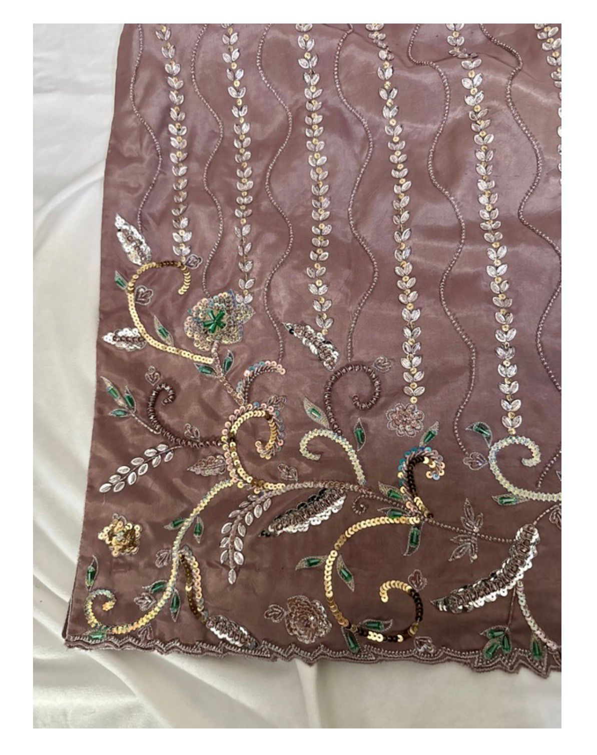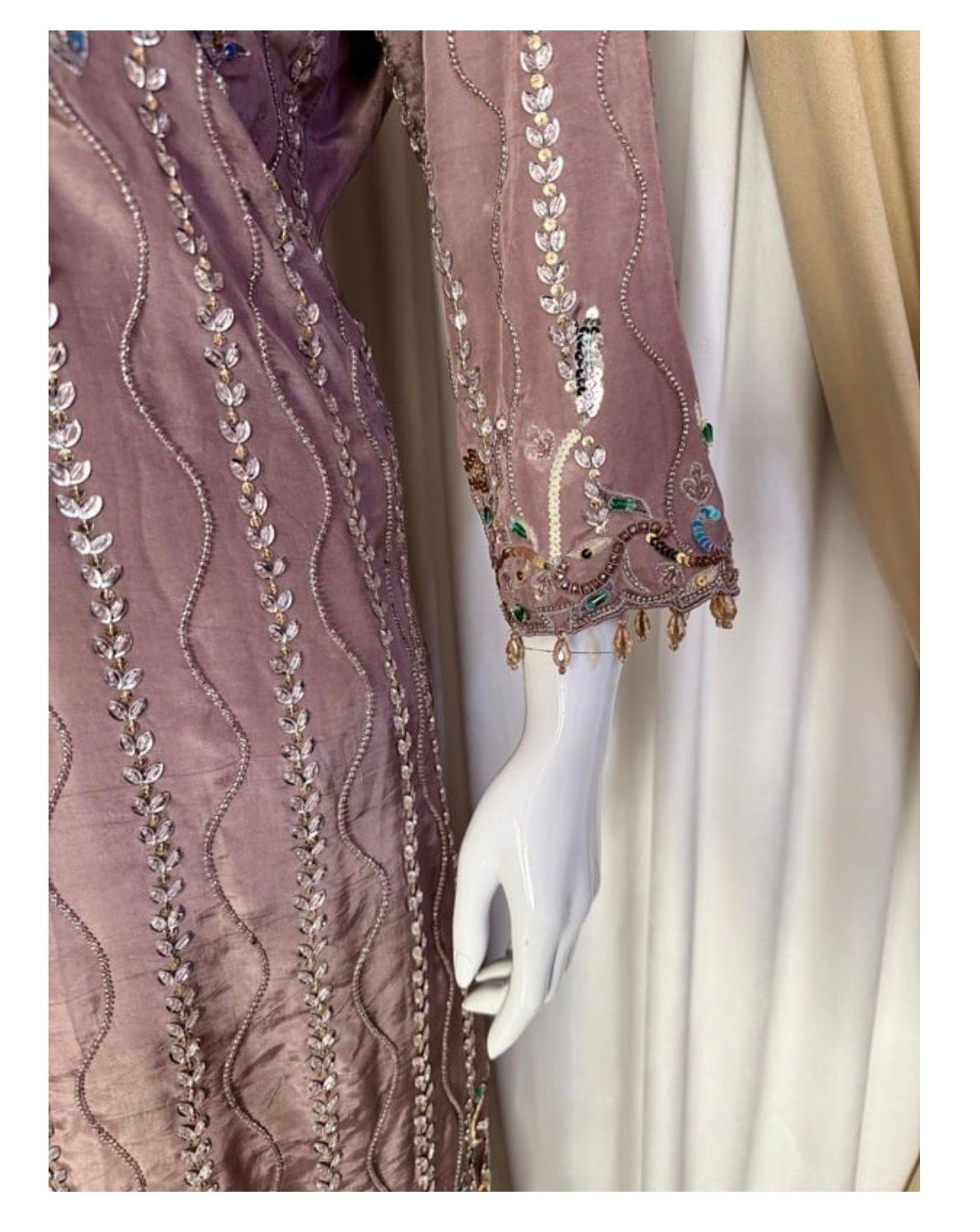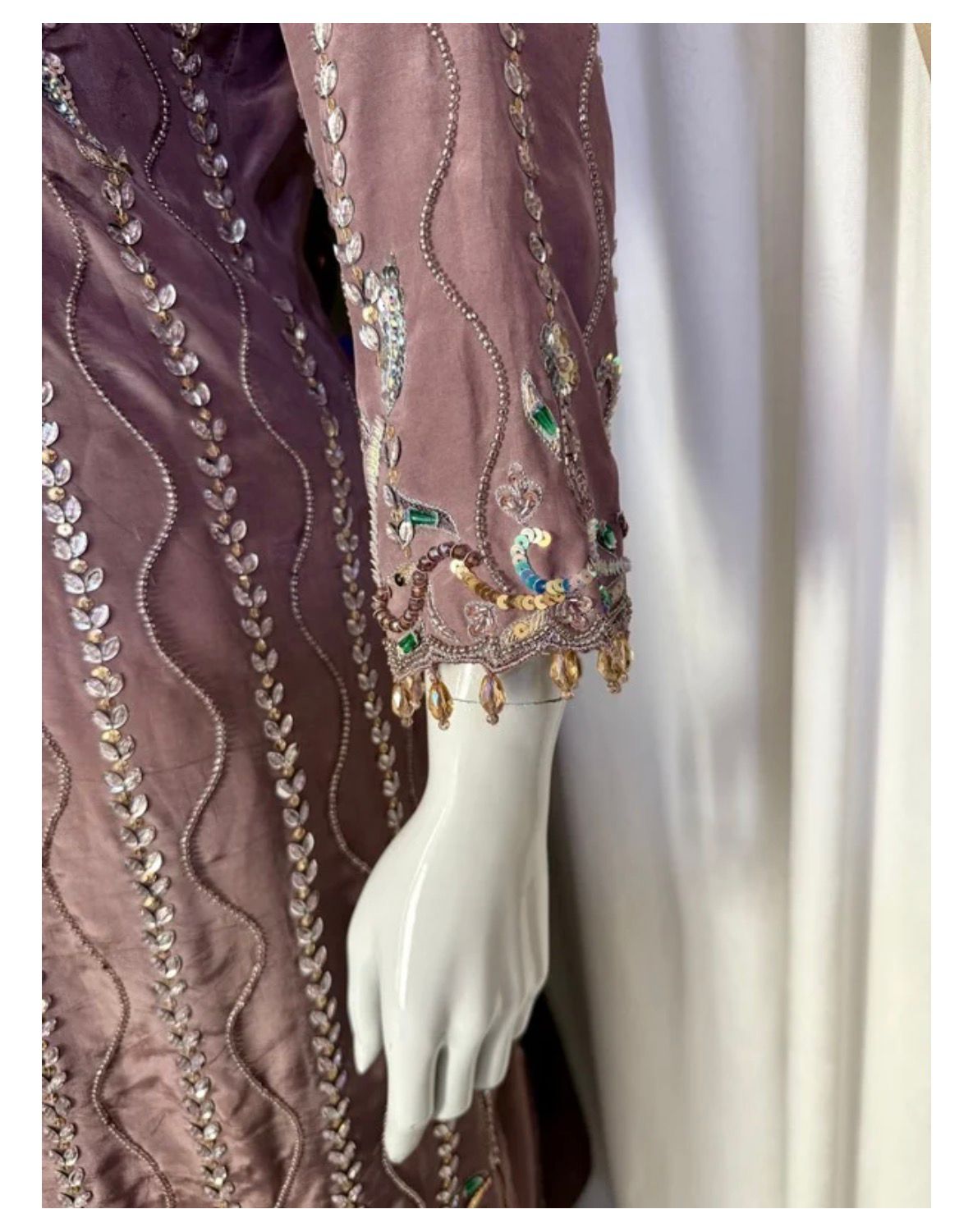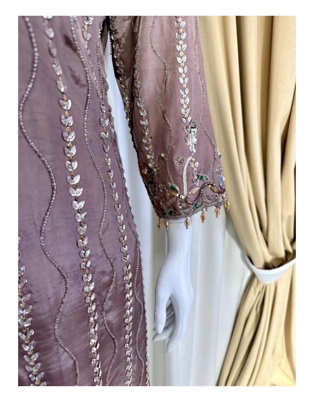 * Artistry: Features a rich blend of Moti (pearls), sequins, Tiki-stones, and crystals, finished with avant-garde 3D hand-work for a tactile, luxury feel.